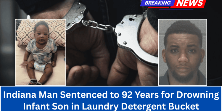 A 29-year-old Indiana man, Eliasard Moneus, has been sentenced to 92 years in prison for the murder of his 3-month-old son, Jacob Moneus, whom he drowned in a bucket of laundry detergent. The baby was placed face down in the bucket, and the lid was sealed, leaving the infant to suffocate and die.